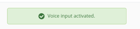 Once voice recognition has been activated you will receive a success notification at the top of your screen and the microphone icon will begin to blink red.