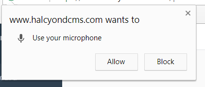 Chrome may request microphone access in order to enable this feature- click "Allow" to continue. You will only need to allow access the first time you use this feature.