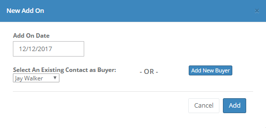 To edit the Add On buyer, click the edit icon. You may add a Balance Due date by typing in the date or clicking the text box to open up a calendar to select a date.
