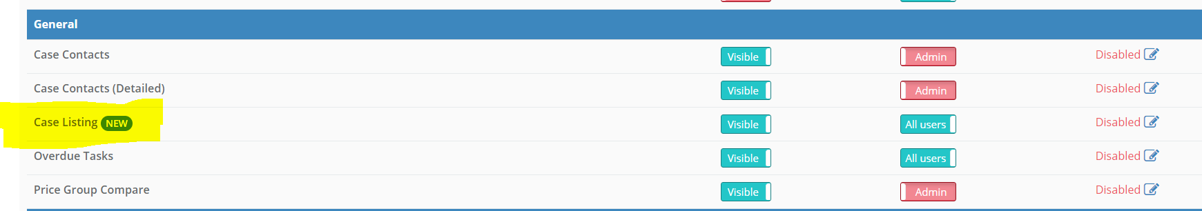 Go to Admin > Miscellaneous > Reports to see all reports setups. The new one is called Case Listing.