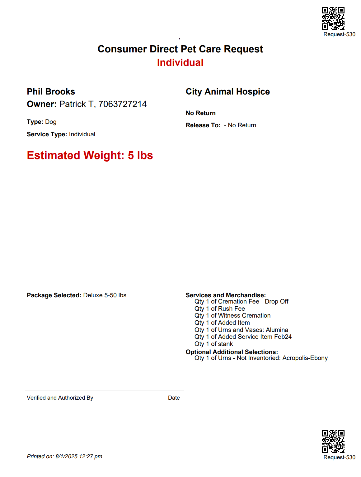 - Once the request is submitted, the vet clinic will receive an email with a Pet Care Request form that includes a QR code. This is to assist your vet clinic partners with keeping track of Direct Pet requests that originated in-house.